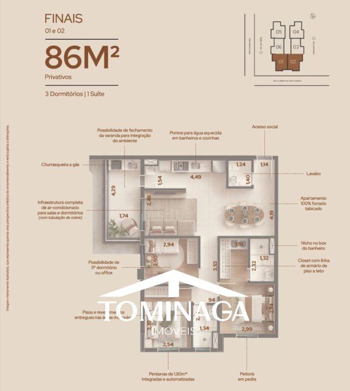 Apartamentos de 86m², com 3 dormitórios | 1 suíte