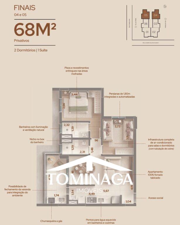 Apartamentos de 68m², com 2 dormitórios | 1 suíte